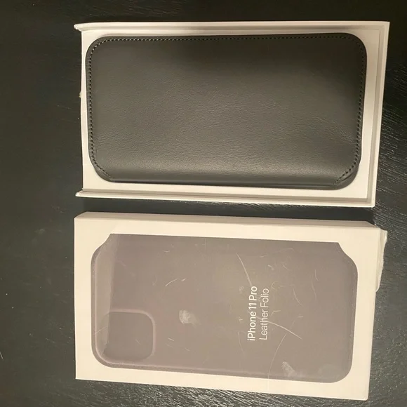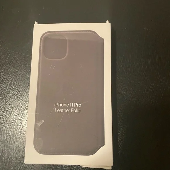 Brand new. Never used. Box is a little beat up from being in storage. Brand: Apple OfficialFits: iPhone 11 Pro Material: leather Crafted from specially tanned and finished European leather for a luxurious look and feel, the iPhone 11 Pro Leather Folio fits snugly around your iPhone. Open it and your iPhone 11 Pro wakes up. Close it and it goes to sleep. Inside there’s a soft microfiber lining for even more protection, and space to hold your bills, small notes, and several cards. And you can keep it on all the time, even when you’re charging wirelessly.Like every Apple-designed case, it undergoes thousands of hours of testing throughout the design and manufacturing process. So not only does it look great, it’s built to protect your iPhone from scratches and drops.